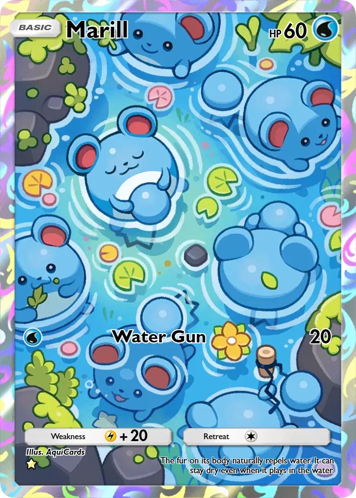 All AquiCards are the same size as official trading cards : 63 × 88 mm.